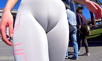 Young curvy doll takes her monstrous cameltoe out for a walk
