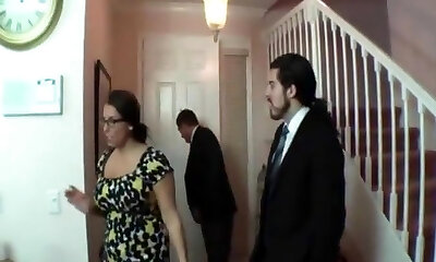 Ginormous boobed bride and her sexy kooky please kinky groom with steamy BJ